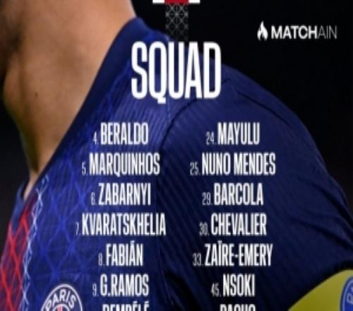 巴黎对阵里尔名单:登贝莱、杜埃、K77在列,若昂内维斯缺席